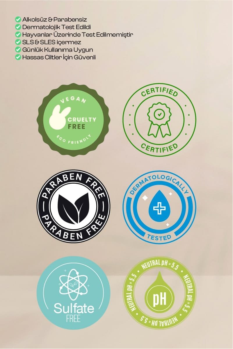 - Temizlik & Hijyen: Cildi nazikçe temizler, bakteri oluşumunu azaltmaya yardımcı olur.