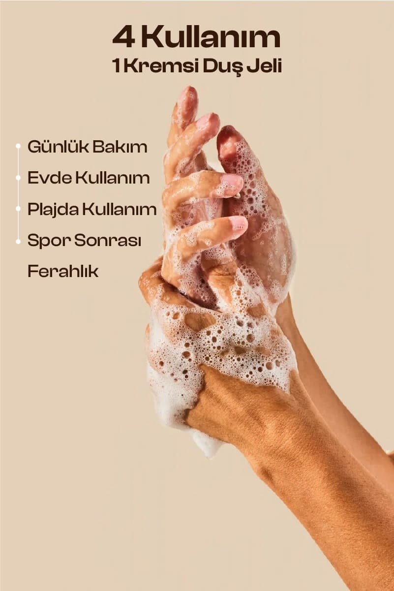 - Kremsi Nemlendirme: Shea yağı ve E vitamini ile derinlemesine besleyici duş bakımı.