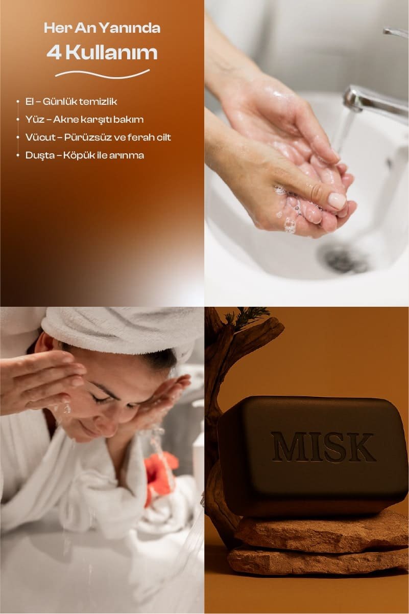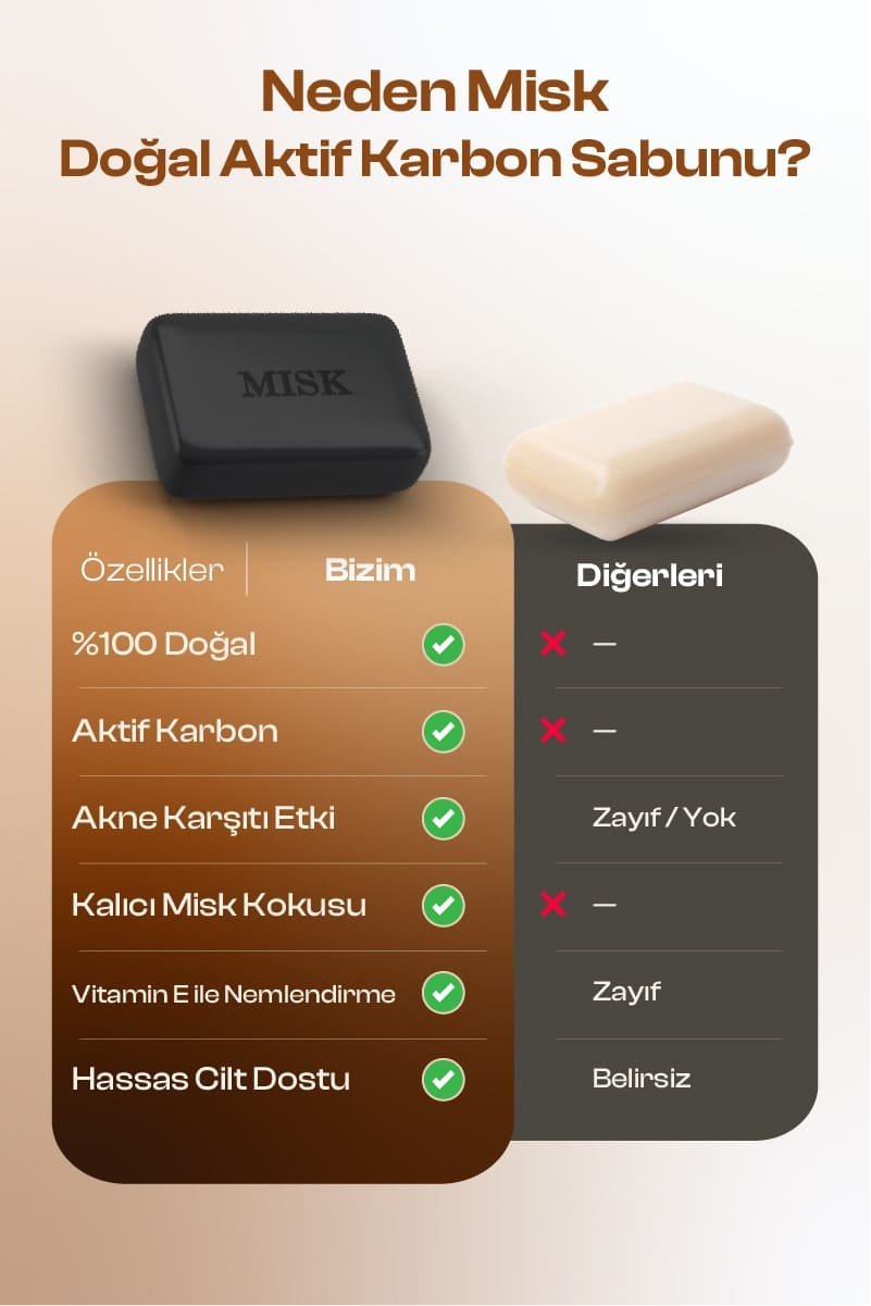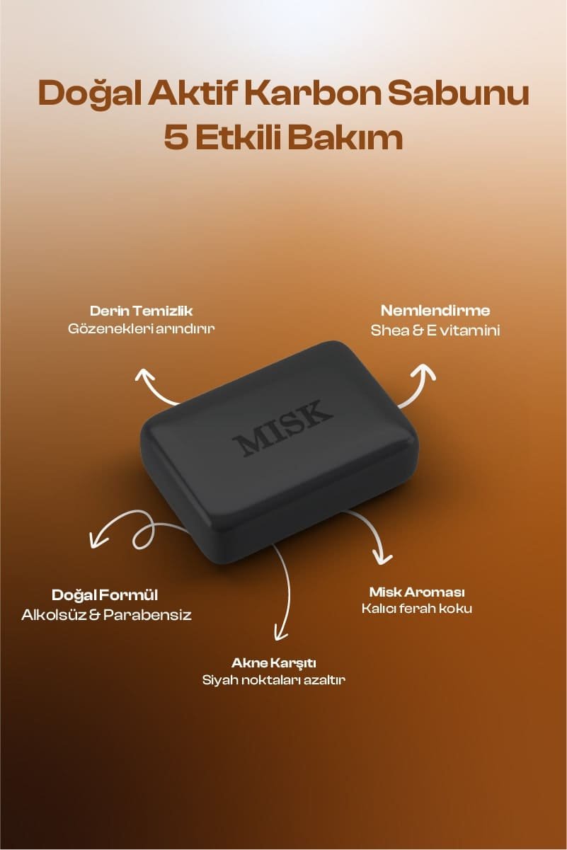 MISK Aktif Karbon Sabunu, siyah misk aromasıyla zenginleştirilmiş derinlemesine temizleyici formülü sayesinde yüz ve vücut için güçlü bir arındırma sunar. Doğal aktif karbon içeriği, gözeneklerdeki fazla yağı ve kiri etkili bir şekilde temizlerken cildi kurutmadan dengeler. Shea yağı ve E vitamini ile desteklenen yapısı, cilde yumuşaklık ve nem kazandırır. Alkolsüz ve parabensiz formülü sayesinde hassas ciltlerde güvenle kullanılabilir.
